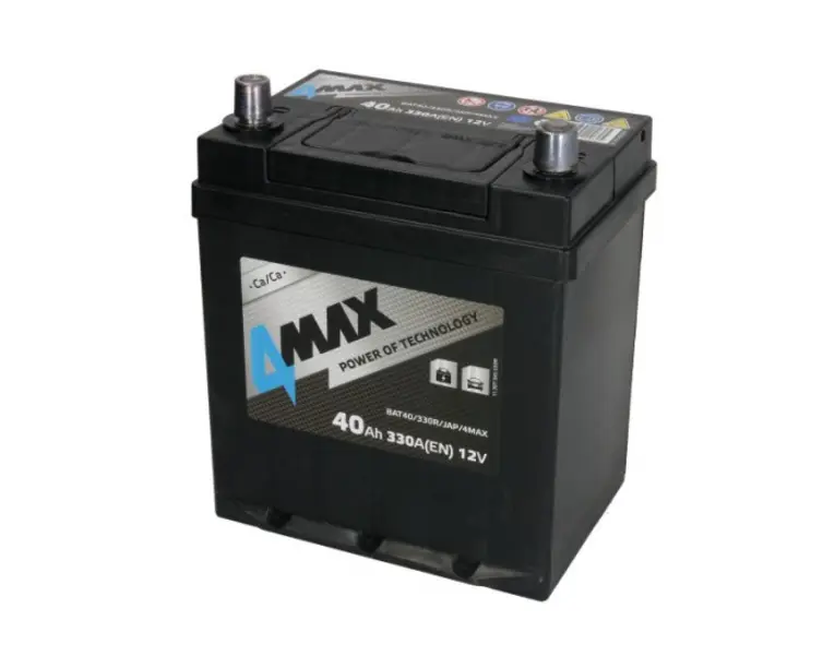 Acumulator 4MAX 12V 40Ah 330A (R+ borna subtire (ptr vehicule japoneze) + borna standard) 187x140x225 B01 - flansa de montare 10.5 mm (pornire)