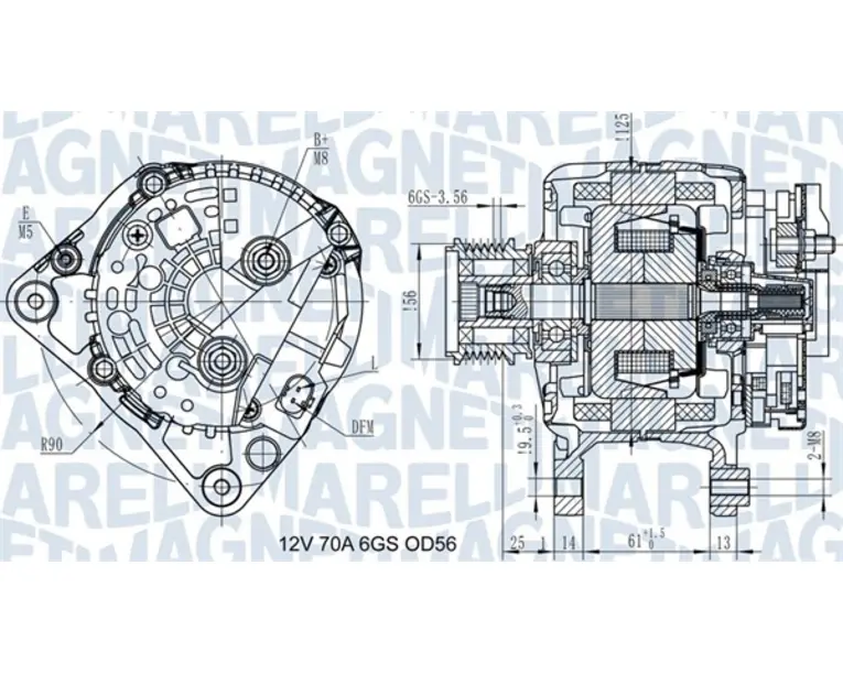DETALII Detalii produs Tensiune 12.0 V Curent de incarcare 70.0 A Fulie Da Numar de caneluri 6.0 buc Diametru 55.0 mm Directie operare Dreapta Cod producator G0R5FP Index 063731502010 Nume Alternator Producator MAGNETI MARELLI…