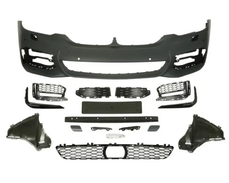 Bara fata cu gaura pentru radar, model pachet M, cu grile, cu locas proiector cu locas spalator de faruri, gauri senzori parcare 6, grunduit potrivit BMW Seria 5 G30 2017-2020