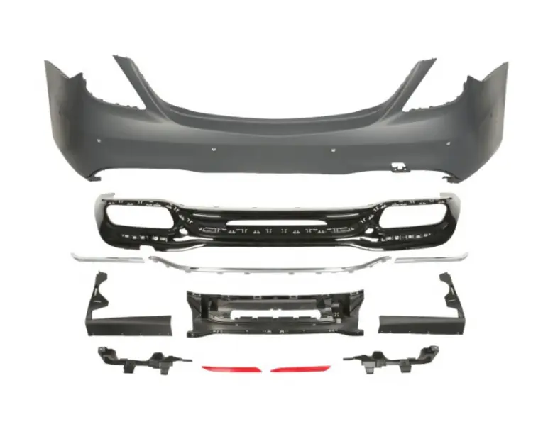 Detalii produs Pozitie de montare Spate Varianta echipament AMG STYLING Culegere comenzi cu intaritura ;cu suporti montaj, ;cu ornamente ;cu valabilitate cu locas senzorii de parcare Da Cu taietura pentru toba de esapament Doua Culoare Negru…