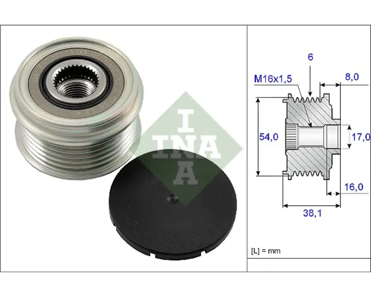Fulie alternator ALFA ROMEO MITO; BMW Seria 1 (E87), 3 (E90), 3 (E91), 3 (E92), 3 (E93); CITROEN NEMO; FIAT 500, 500 C, 500L, DOBLO, DOBLO CARGO, FIORINO, GRANDE PUNTO, IDEA, LINEA 1.0-3.0D dupa 1998 numar caneluri: 6.0 buc Latime: 38.1 mm Diametru…