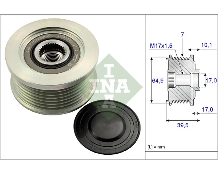 Fulie alternator NISSAN CABSTAR, MURANO II, NP300 NAVARA, NT400 CABSTAR, PATHFINDER III, PICK UP 2.5D dupa 2002 numar caneluri: 7.0 buc Latime: 39.5 mm Diametru interior: 17.0 mm Diametru exterior: 64.9 mm Greutate: 0.76kg numar caneluri:…