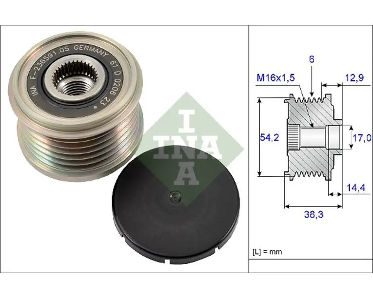 Fulie alternator VOLVO S80 II, V70 III; CITROEN BERLINGO, BERLINGO MULTISPACE, C1 II, C2, C3 AIRCROSS II, C3 I, C3 II, C3 III, C3 PICASSO, C3 PLURIEL, C4, C4 AIRCROSS, C4 CACTUS 1.0-2.2D dupa 1996 numar caneluri: 6.0 buc Latime: 38.3 mm Diametru…