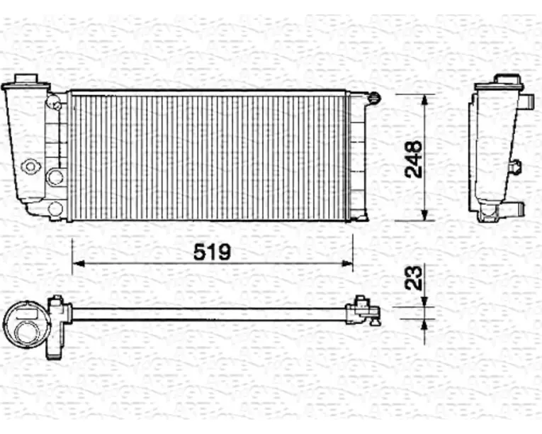 DETALII Detalii produs Inaltime 522.0 mm Latime 252.0 mm Grosime 23.0 mm Cu rama Nu Aer conditionat Nu Tip cutie viteze Manual Automat Cod producator AA9CD3 Index 350213101000 Nume Radiator, racire motor Producator MAGNETI…