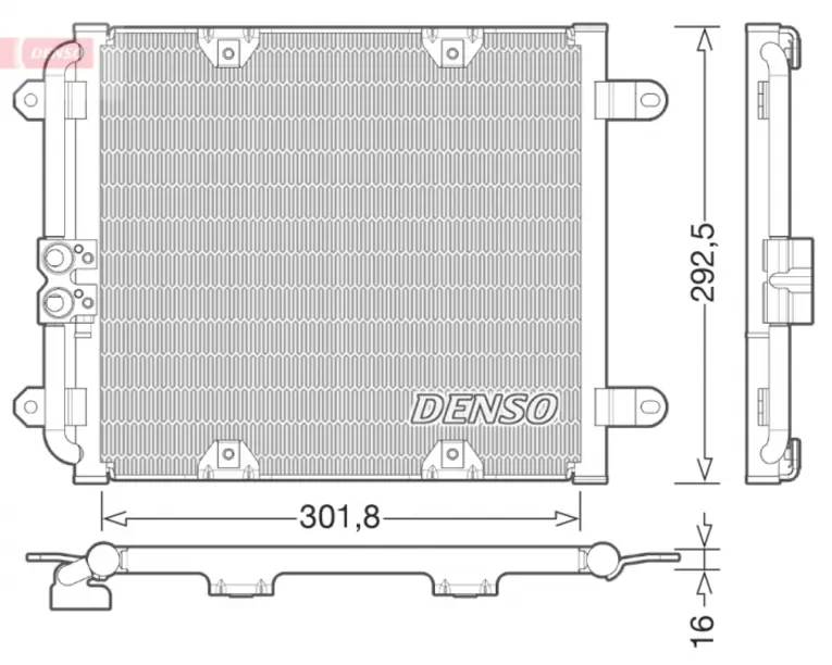 Detalii produs Latime 301.8 mm Inaltime 292.5 mm Grosime 16.0 mm Uscator Nu Greutate 1,50 kg Cod producator G0K6O5 Index DCN02028 Nume Condensator, climatizare Producator DENSO Unitate de masura piesa Importator producator…