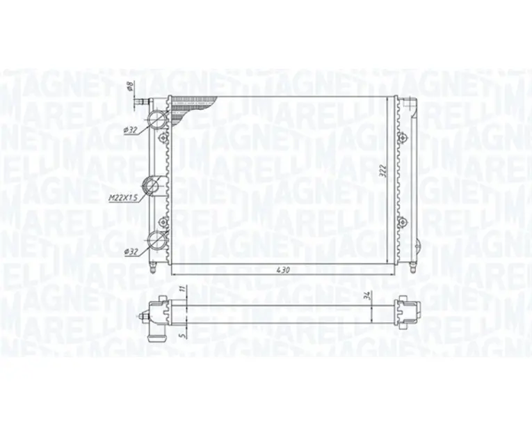Radiator racire motor potrivit VW DERBY, GOLF I, GOLF II, JETTA I, JETTA II, PASSAT B2, POLO, POLO CLASSIC, POLO II, SANTANA, SCIROCCO 1.0-1.8