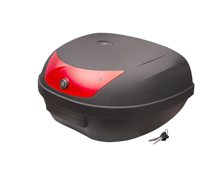Cutie Bagaje Motociclete, Top Case Cu Suport, Culoare Negru, Reflectorizant Rosudescriere Generala: Perfect Pentru Scutere, Mopede, Motociclete Mici Culoare Neagra Reflector Rosu Capacitate: 48 L. Dimensiuni L 43 X L 58,5 X H 32 Cm Detine Doua Casti Integrale Rezistent La Apa Asamblare Simpla Si Rapida Placa De Montare Universala, Montata Pe Aproape Toate Suporturile De Bagaje Din Scutere Si Motociclete Setul Include: Cutie Placa De Montaj Set De Placi De Prindere La Portbagaj Set De Chei (2 Buc)