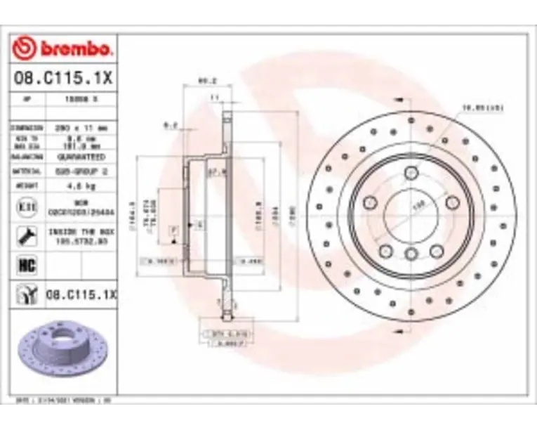 Detalii produs Parte de fixare Dreapta / · Stanga Linie Xtra Diametru exterior 290.0 mm Grosime 11.0 mm Tip disc forate Tip disc deplin /perforata Constructie disc o bucata Numar gauri de fixare 5.0 buc Diametrul gaurii 75.0 mm Cantitate 1.0 buc Inaltime 66.0 mm Grosime minima 9.6 mm Suprafata acoperit Unitate de vânzări 1 buc. Offer Tuning Greutate 5,41 kg Mărimea Pachetului 2 Cantitate recomandată 2 Cod Inter Cars G0VASF Eticheta produs Eticheta printabila Index 08.C115.1X Nume Disc frana Producator BREMBO Unitate de masura piesa Importator Inter Cars Ro Tara de origine Italy Detalii TecDoc Tip disc frâna plin perforat Grosime disc frâna [mm] 11.0 Numar gauri 5.0 Articol completare/Info suplimentar 2 cu suruburi Înaltime [mm] 66.0 Diametru de centrare [mm] 75.0 Diametru exterior [mm] 290.0 Procesare continut ridicat de carbon Suprafata acoperit (cu un strat protector) Grosime minima [mm] 9.6 ECHIVALENTE APLICATII