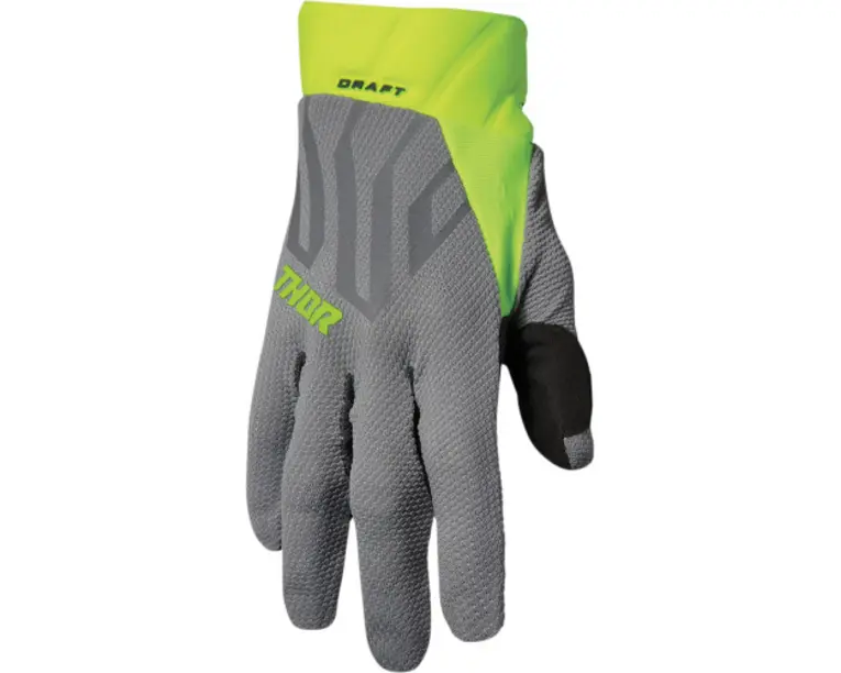 Manusi Atv/cross Thor Draft, Culoare Gri/acid, Marime Xsspecificatii: Material Elastic Pentru O Mobilitate Optima Plasa Proiectata Pe Tot Spatele Pentru O Ventilatie Optima Varfurile Degetelor Tratate Cu Silicon Pentru O Aderenta Imbunatatita Detalii Din Cauciuc Pentru O Aderenta Crescuta