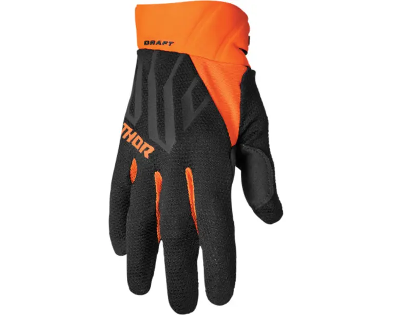 Manusi Atv/cross Thor Draft, Culoare Negru/portocaliu, Marime Sspecificatii: Material Elastic Pentru O Mobilitate Optima Plasa Proiectata Pe Tot Spatele Pentru O Ventilatie Optima Varfurile Degetelor Tratate Cu Silicon Pentru O Aderenta Imbunatatita Detalii Din Cauciuc Pentru O Aderenta Crescuta