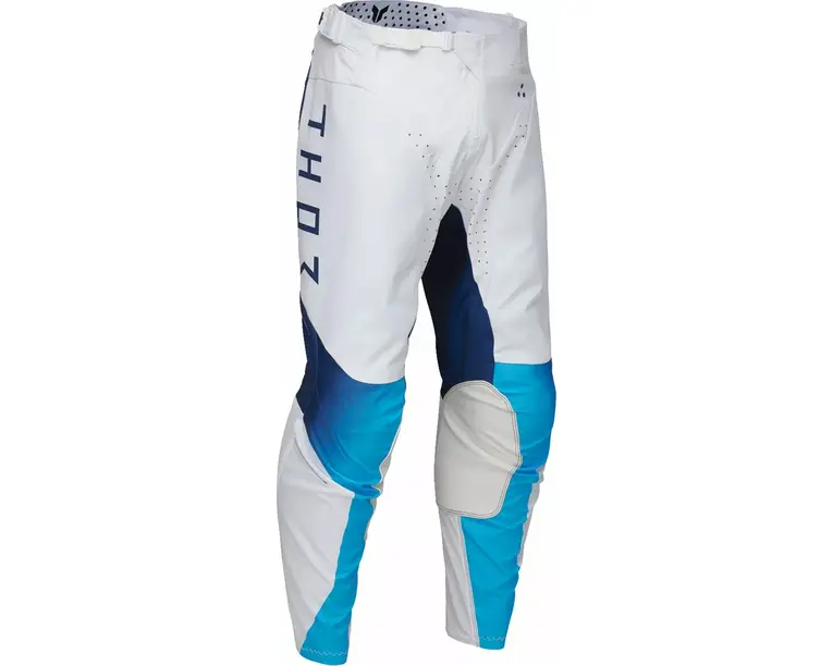 Pantaloni Motocross Thor Launchmode Storm, Culoare Alb/albastru, Marime 44specificatii: Material De Sasiu Poli-stretch Si Non-stretch Pentru Confort Si Durabilitate Orificii Perforate Taiate Cu Laser Pentru Un Flux De Aer Sporit Captuseala Interioara Din Plasa Poly Care Elimina Umiditatea Mentine Corpul Rece Si Uscat Panouri Din Plasa La Picioarele Inferioare Pentru A Scapa Caldura Corpului Talia Interioara Imprimata Cu Silicon Lipici Mentine Tricoul La Loc Sistem De Inchidere A Taliei Cu Clichet, Cu Fixare Precisa, Cu Dispozitive De Reglare Suplimentare A Soldurilor Laterale Panouri Interioare De Prindere Pentru Genunchi Din Piele Integrala Durabila